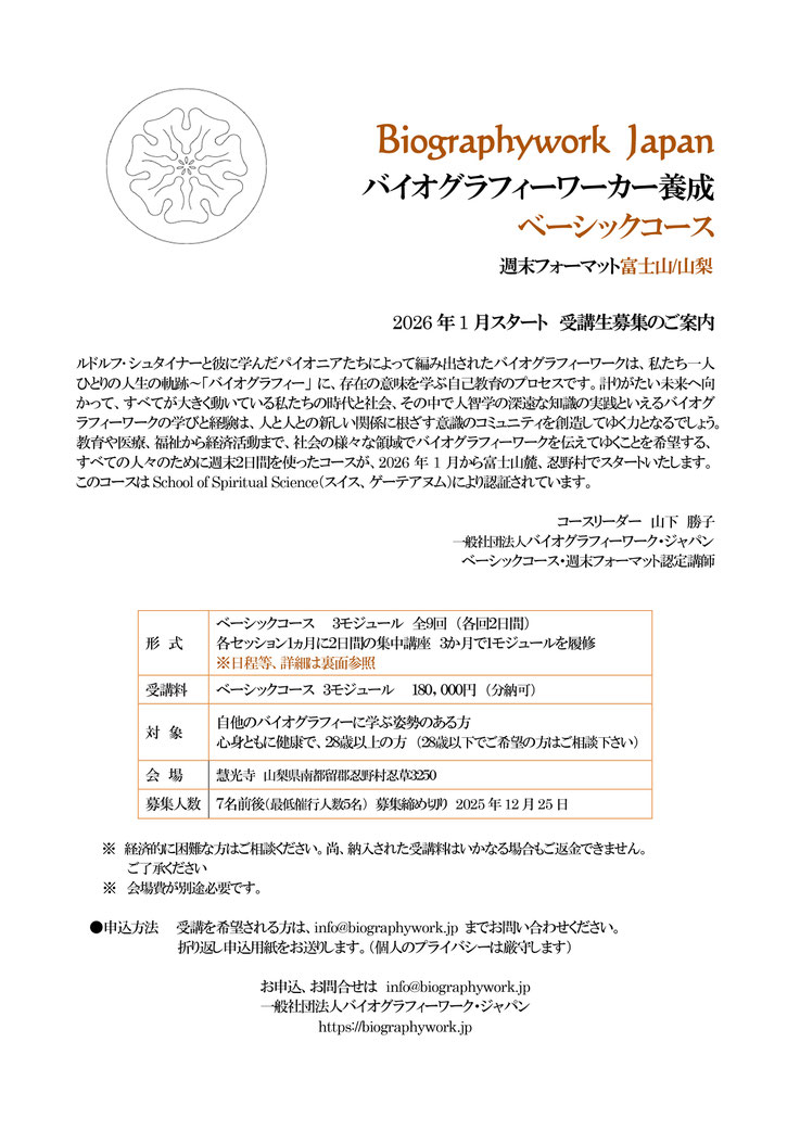 お問い合わせ、お申し込みはバイオグラフィーワーク・ジャパンまで。info@biographywork.jp